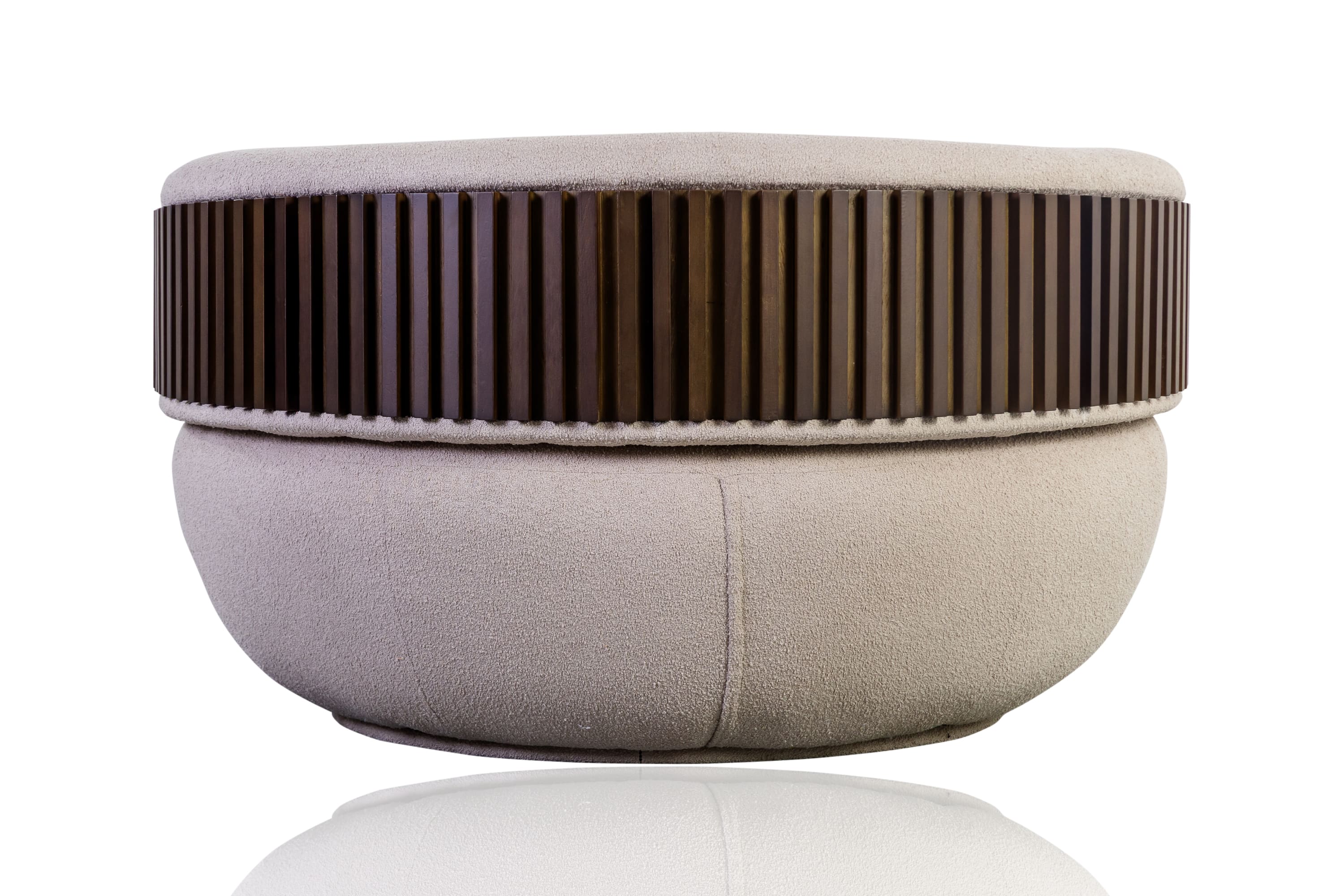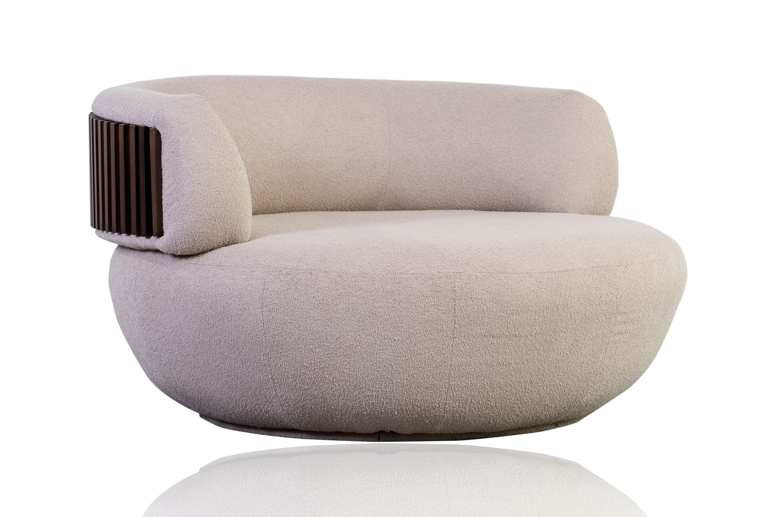Estrutura em madeira de reflorestamento (eucalipto) com controle de umidade. Método ecologicamente correto. Na montagem da estrutura são utilizados grampos não oxidantes e cola especial e resistente. Assentos fixos com espuma HR D-30 Soft, revestida com fibra de poliéster siliconada. Encosto fixo com espuma D-18 Soft, revestida com fibra de poliéster siliconada. Sistema de conforto - Percintas elásticas trançadas com molas Bonnel.