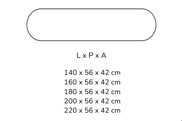 Assento fixo com espuma HR D-30 Soft, revestida com fibra de poliéster siliconada.