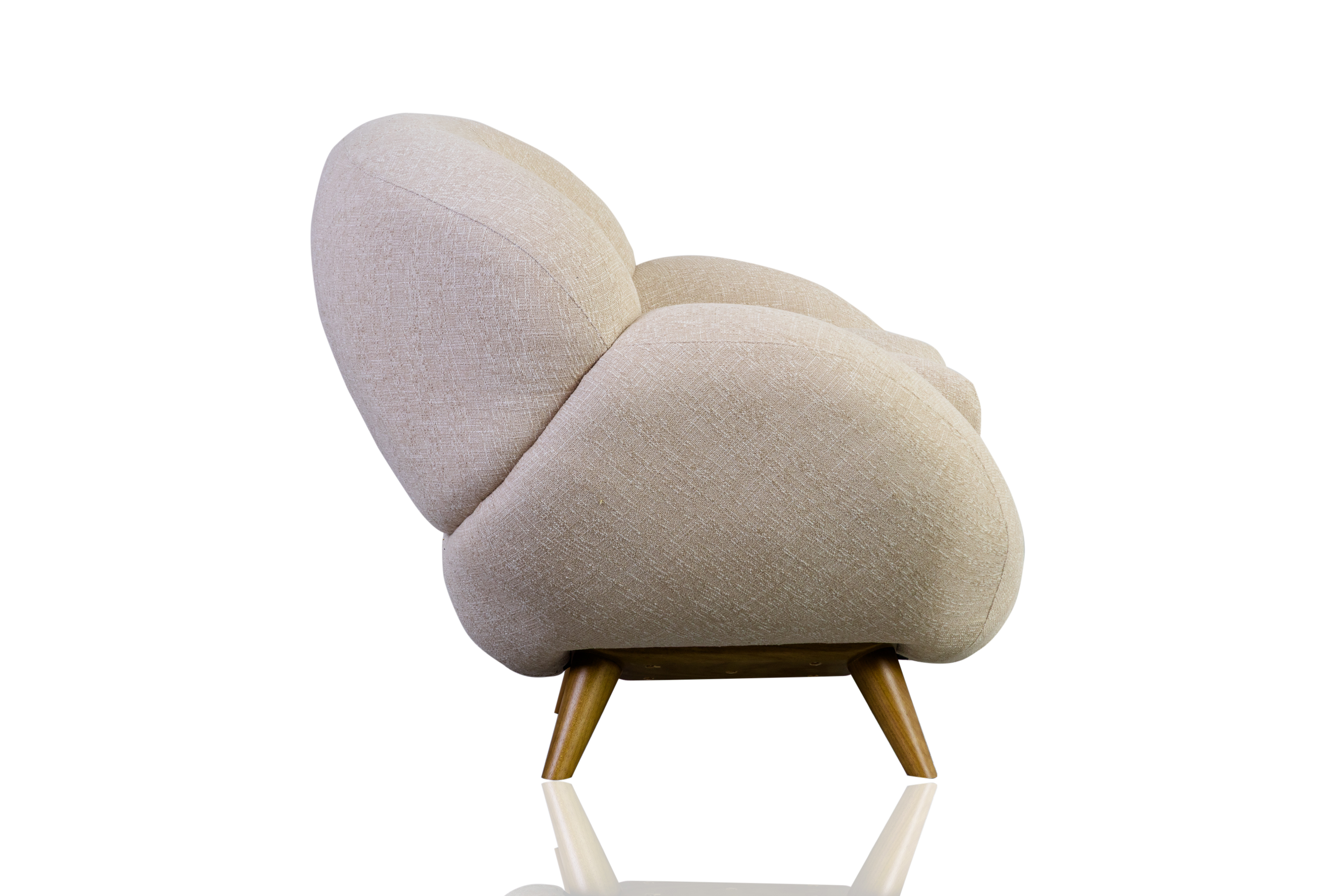Assento fixo com espuma HR D-30 Soft, revestida com fibra de poliéster siliconada.