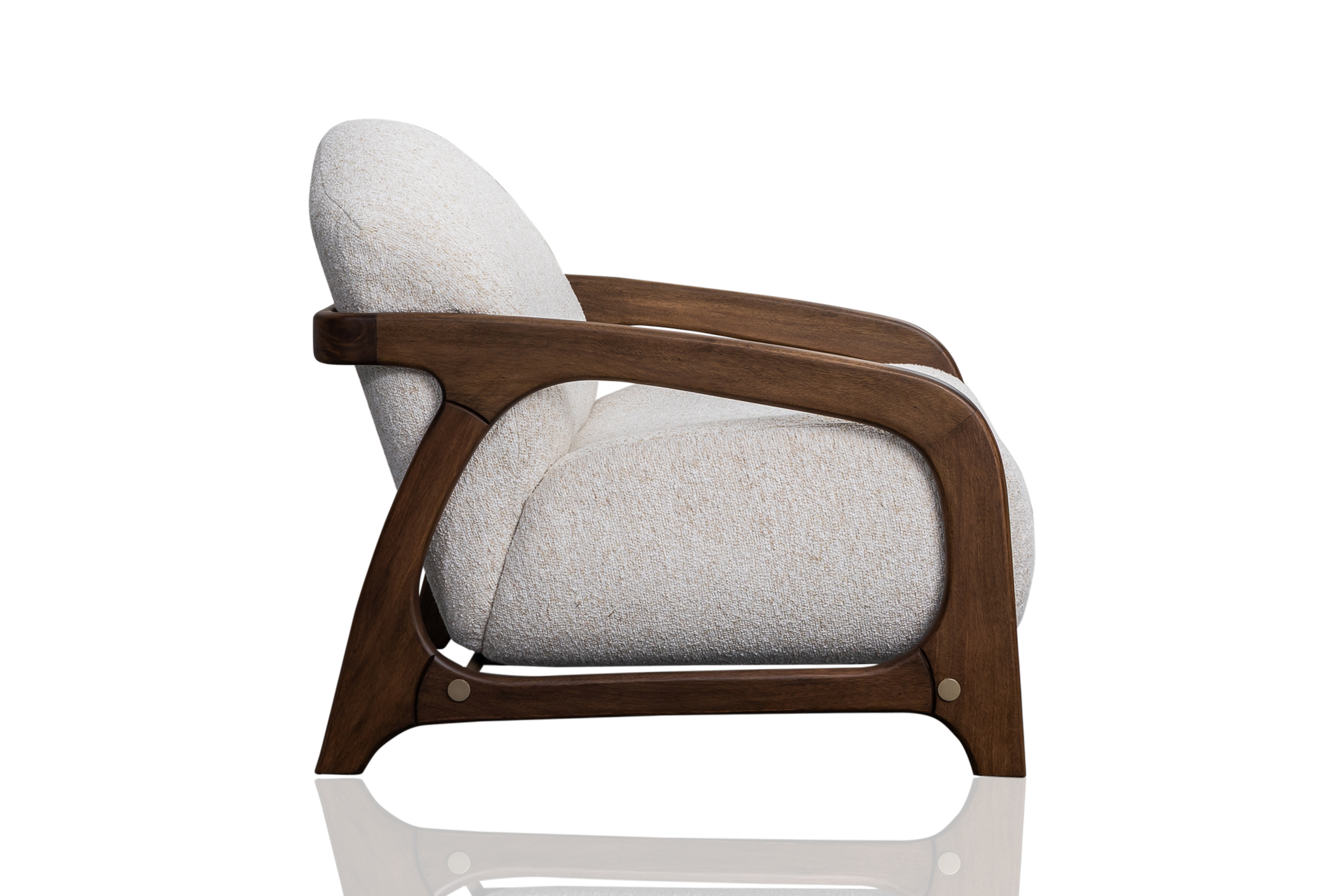 Assento fixo com espuma HR D-30 Soft, revestida com fibra de poliéster siliconada.