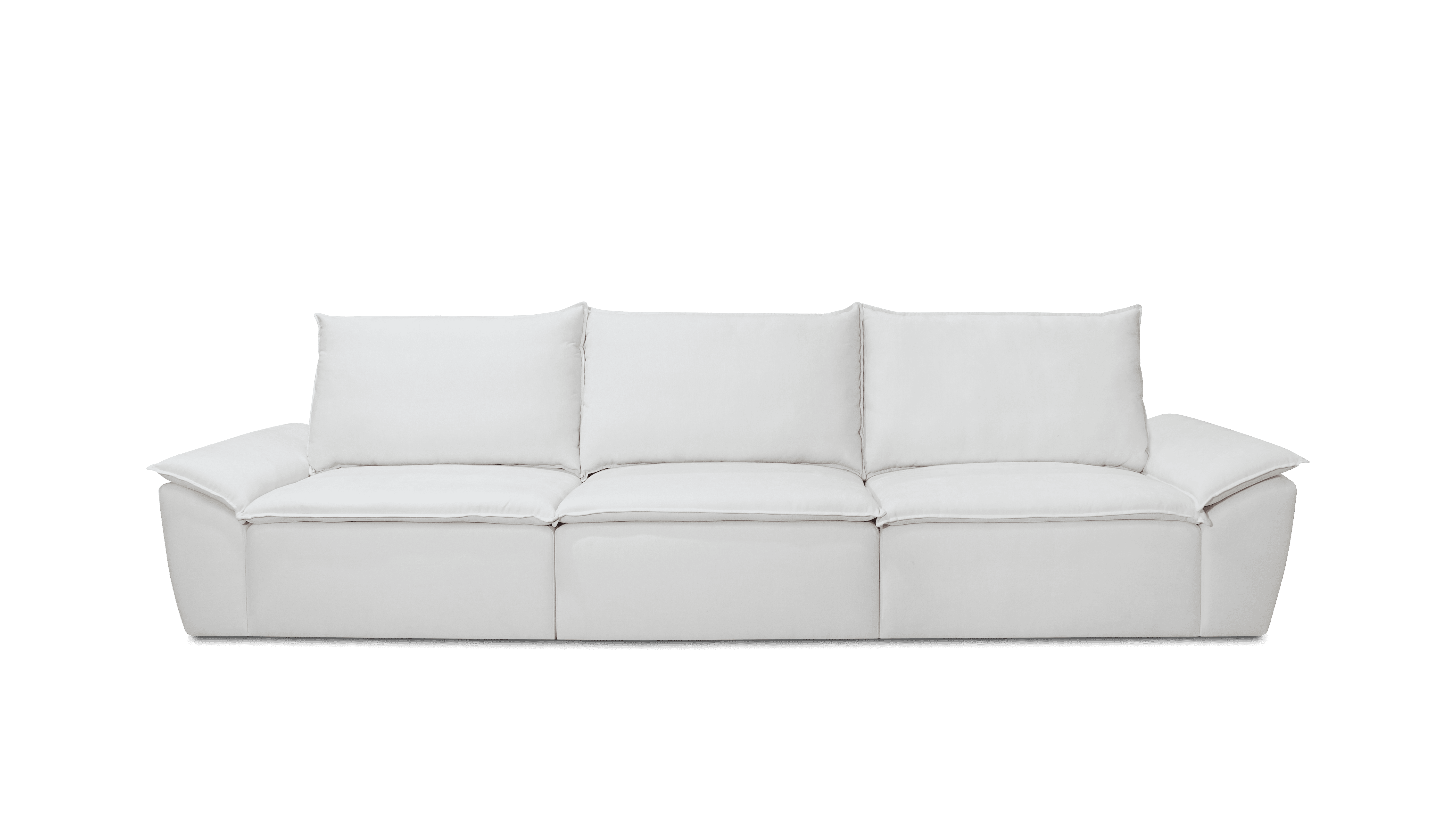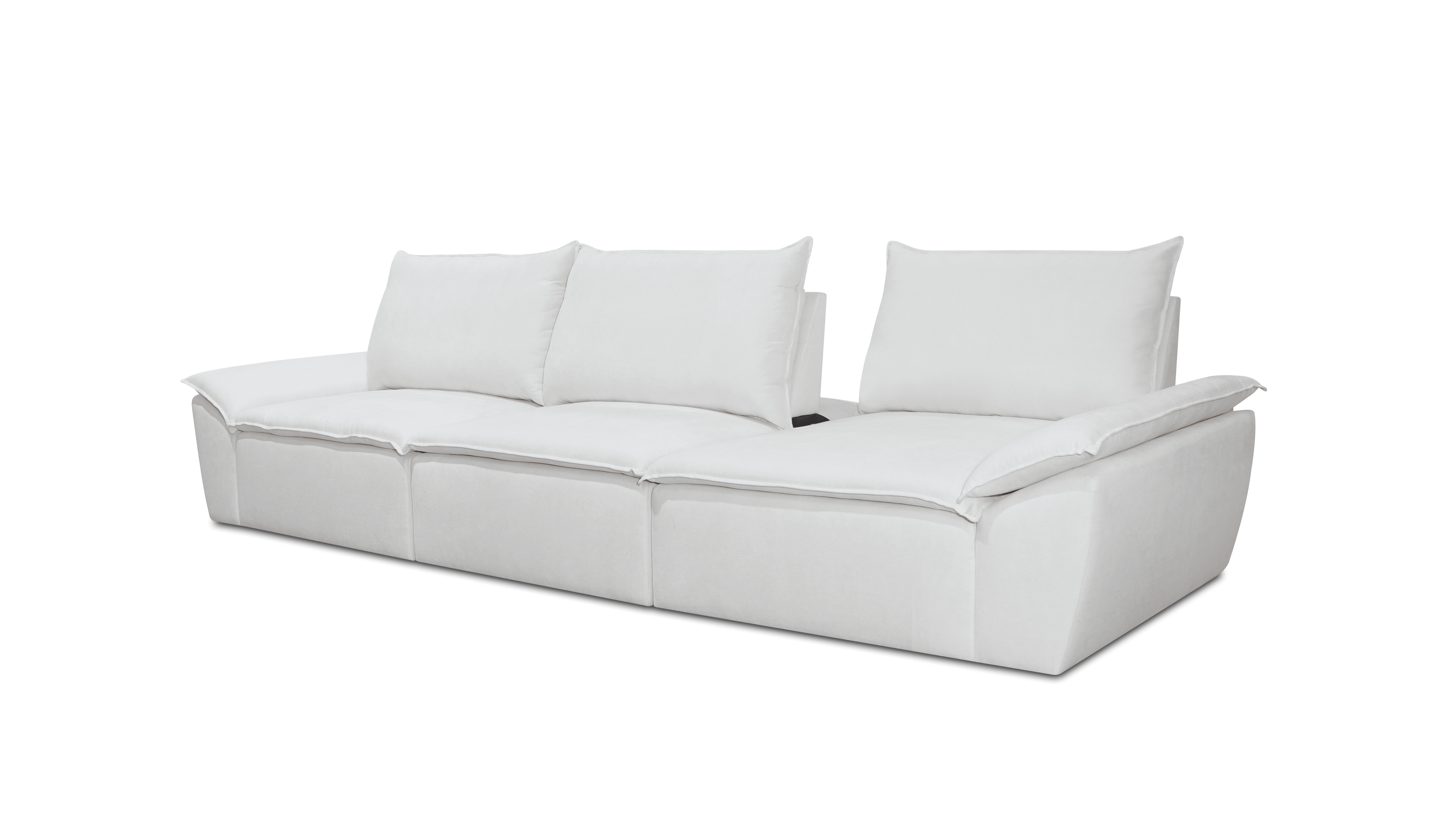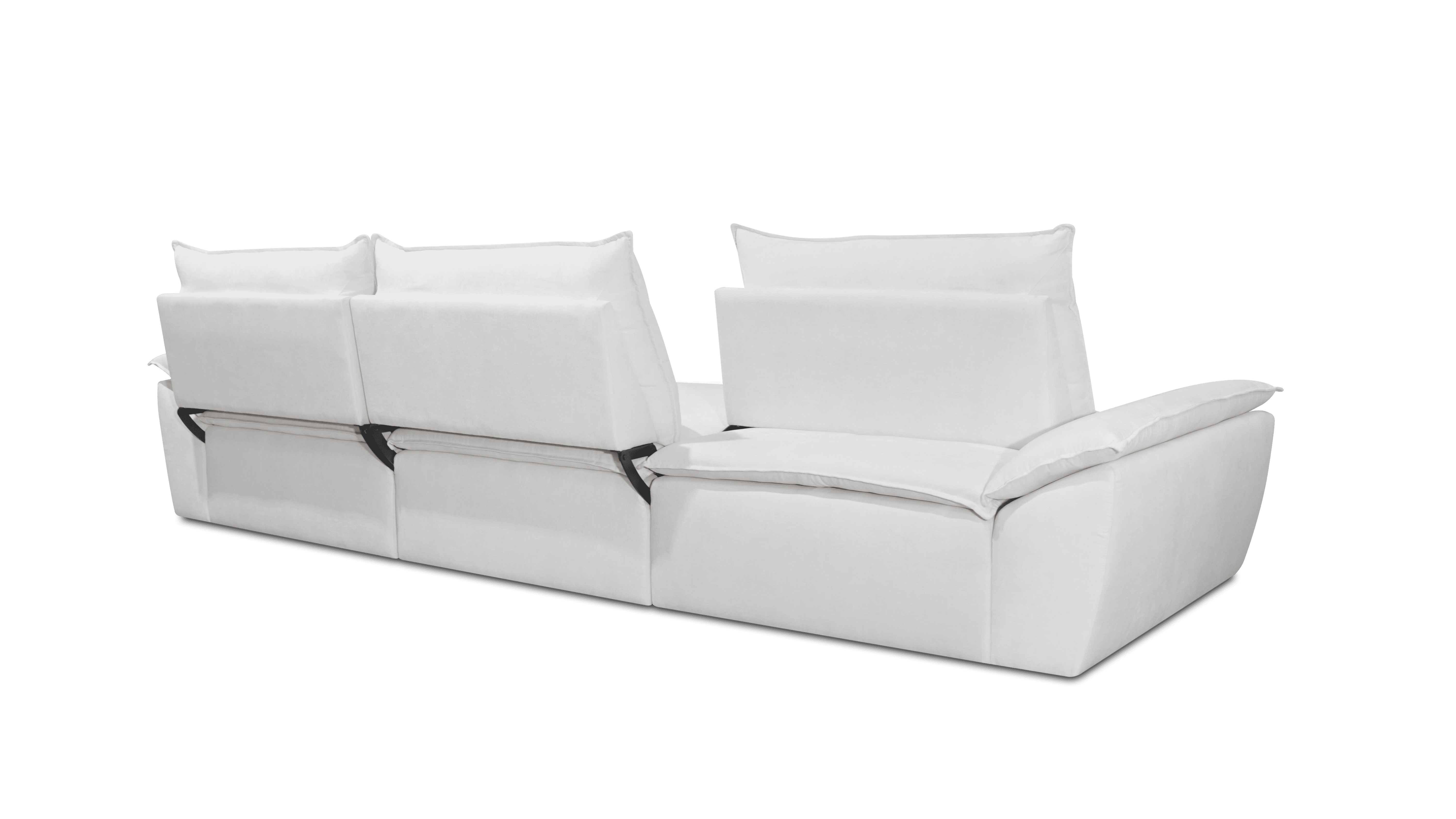 Encostos com almofadas soltas em fibras de poliéster siliconadas.