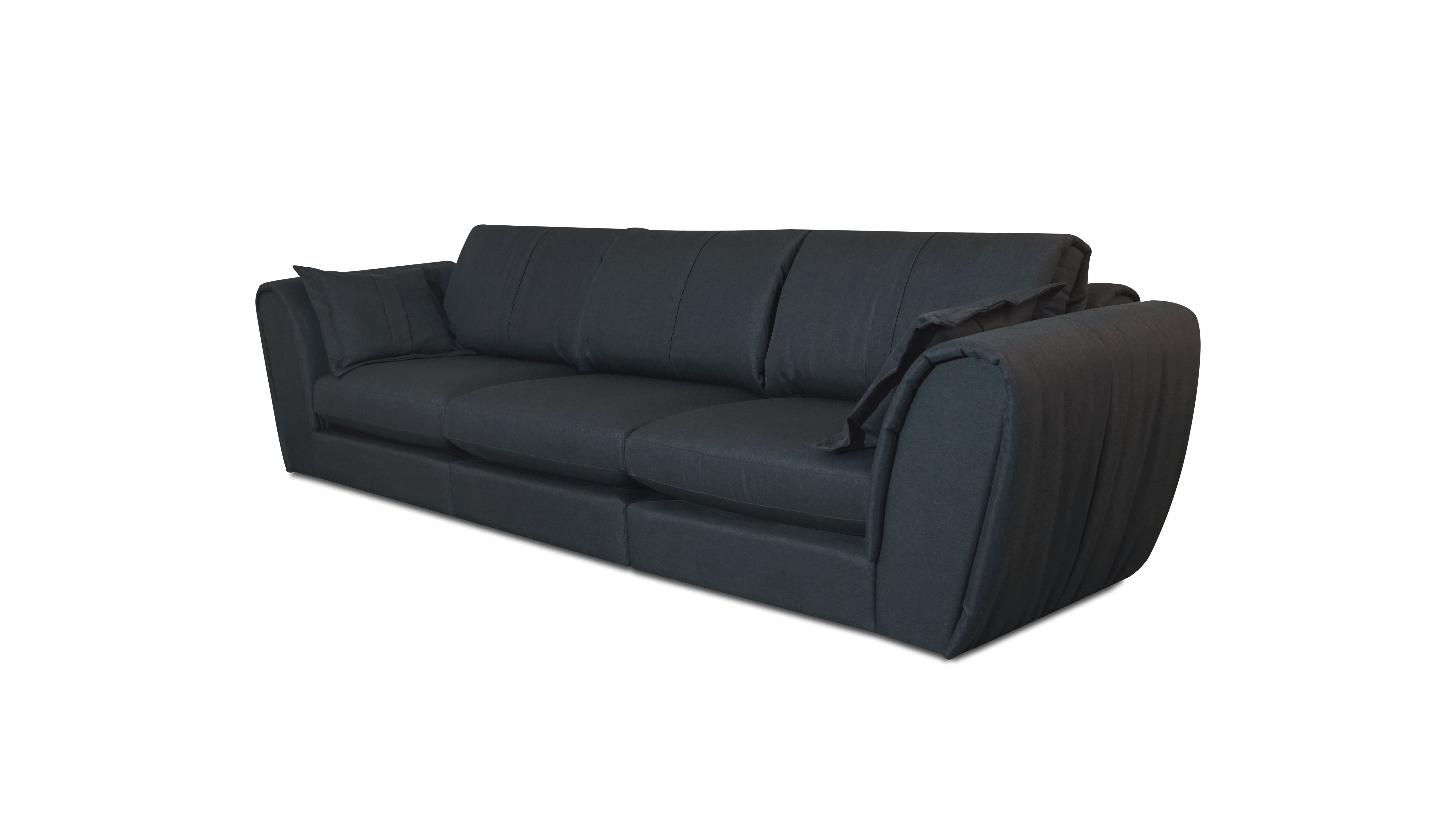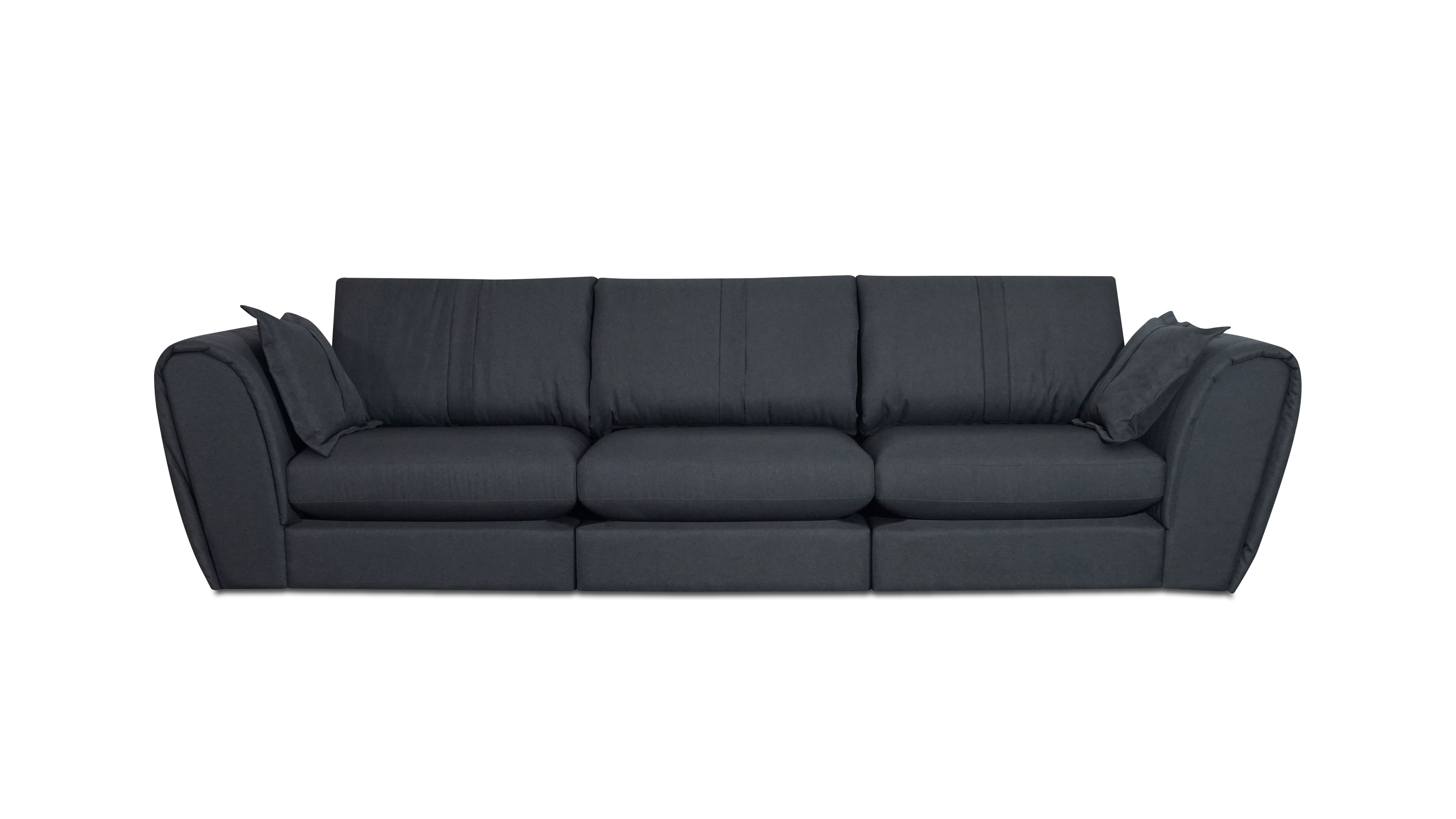 Encostos com almofadas soltas em fibras de poliéster siliconadas.
